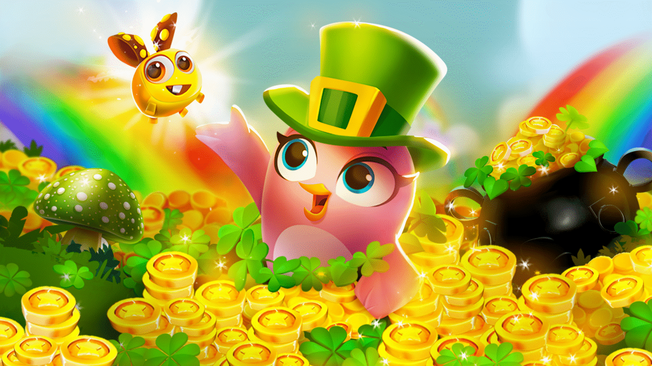 Join Stella, Red, Silver and the rest of the flock to celebrate St Patrick’s Day surrounded by tons of sparkling golden pots. Ready for fun? Let your lucky hand lead the way and play through levels, gather tokens and collect rewards!