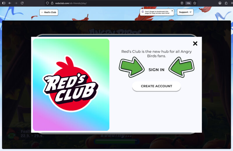 4. Only once you have the Red’s Club account, fly over to: https://redsclub.com/ab-friends/play/