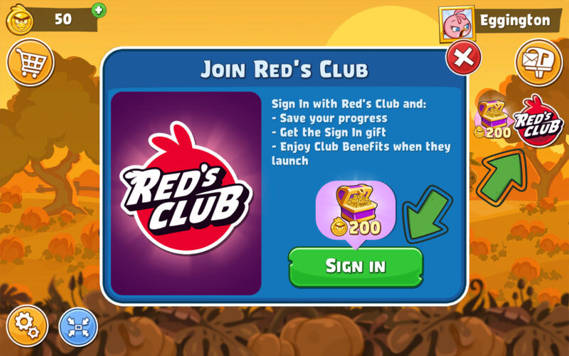 In the Microsoft Store version, you’ll find Red’s Club button just under the Piggy Mail box.