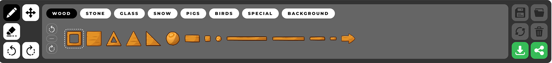 Step into the Level Editor, a creative sandbox where you can create, stack, and experiment with the classic Angry Birds Friends building blocks.